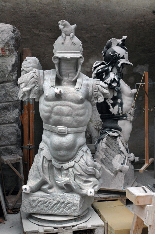 Detail restoration of a trophy (baroque) and copy work in sandstone einer Trophäe