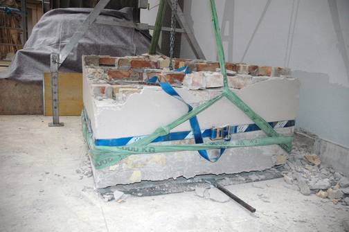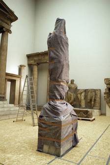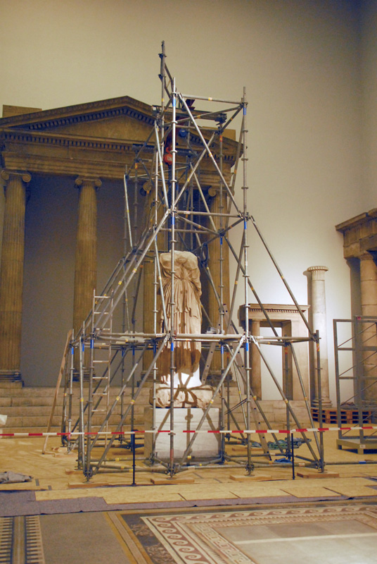 Abbau Architekturproben, Hellenistischer Saal, schonender Rückbau und Transport antiker Architekturteile