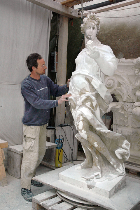 Detail reconstruction and Copy of the more than life hight garden sculpture "Flora" (sandstone)