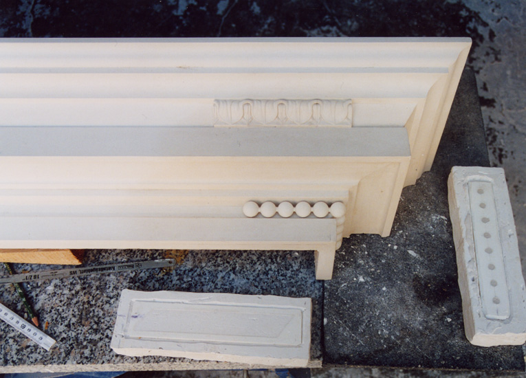 Sculptural reconstruction of three stuccoed fireplaces for the Garden Room, the Lounge and the Billiard Room, based on historical photographs