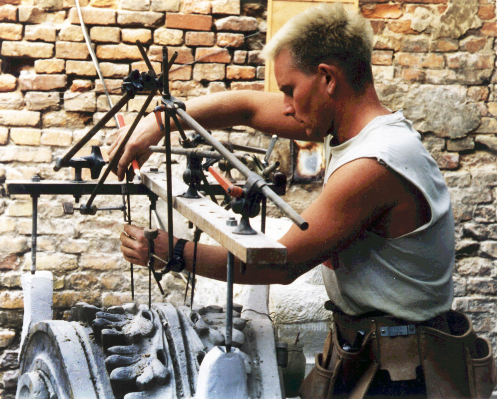 Stone sculptural copy of nine ornamental keystones (sandstone) for the facade of the Leipzig University Library