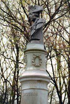 Removal, cleaning, restoration, reconstruction of details, and preservation of a 5m high classicist marble stele and reconstruction (copy) of a colossal bust of Frederick II from photographs and designs by Ch. D. Rauch of the monument to Frederick II in the Friedrichshain public park in Berlin