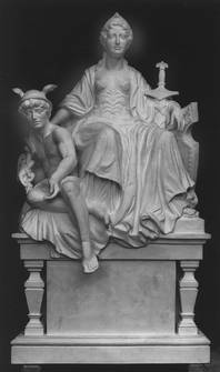 Rekonstruktion, Bozetti zweier Figurengruppen (M 1:4), "Minerva und Merkur" und "Wissenschaft und Handwerk"