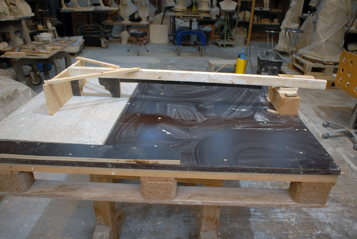 Nachempfindung in Modellton, Realisierung des Duktus und der Handschrift der „Alten Meister“ an den Modellen. Formenbau und Abguss in Stuckgips als Vorlage für die Baukeramikausformung.