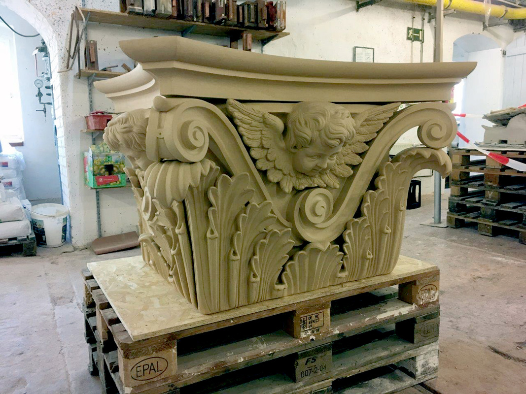 Historische Fassade, Rekonstruktion von einem Kapitell, einer Konsole und eines Zierkranzes für die Schlosskuppel, 2017